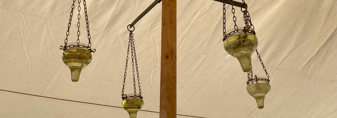 Bei den Ritterspielen Maxlrain im September 2023 konnten wir unsere Hängelampe zum ersten Mal testen und wir sind begeistert! Die Lampe macht ein wunderschönes Licht und ist einfach zu handhaben. Einmal pro Abend muss etwas Öl nachgefüllt und der Docht minimal nachgezogen werden, dann brennt die Lampe stundenlang vor sich hin.