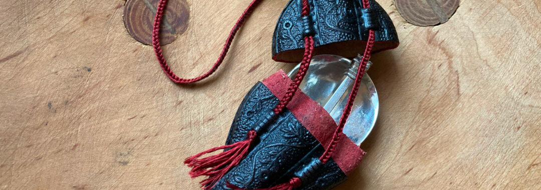 Um die mittelalterlichen Gaumenfreuden richtig genießen zu können, braucht's einen Löffel. Zum Geburtstag unseres Obmanns habe ich einen Silberlöffel, ein wunderschönes Replik aus dem 14. Jahrhundert, erstanden und fertige dafür ein passendes Lederetui an.